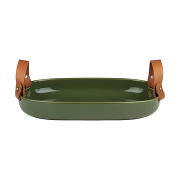 The Oiva large serving platter 23x32 cm from Marimekko, designed by Sami Ruotsalainen, is made of 100% stoneware with a light blue glaze. The platter's elegant leather handle can easily be removed and must be taken off before washing. The serving platter, which comes in packaging with Marimekko's logo pattern, is perfect as a gift for someone you care about.